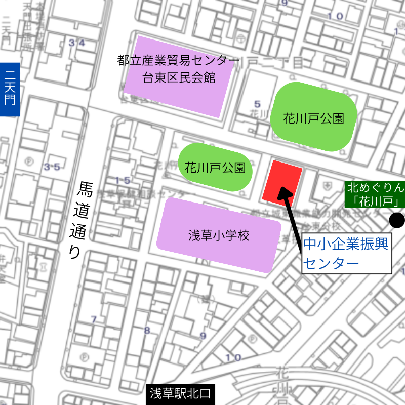 中小企業振興センターは大規模改修工事に伴い2026年7月21日より(旧浅草保健相談センター:台東区花川戸1-14-16)に仮移転します。