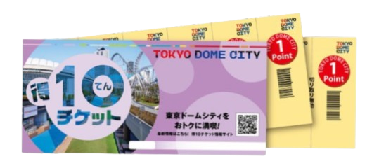東京ドームシティの各施設で使える、1冊10ポイント付きのレジャーチケット。対象施設には利用に必要なポイント数が設定されており、自由な組み合わせでいろいろな施設や期間限定イベントなどを楽しめます。販売は年度で前期・後期の2回です。