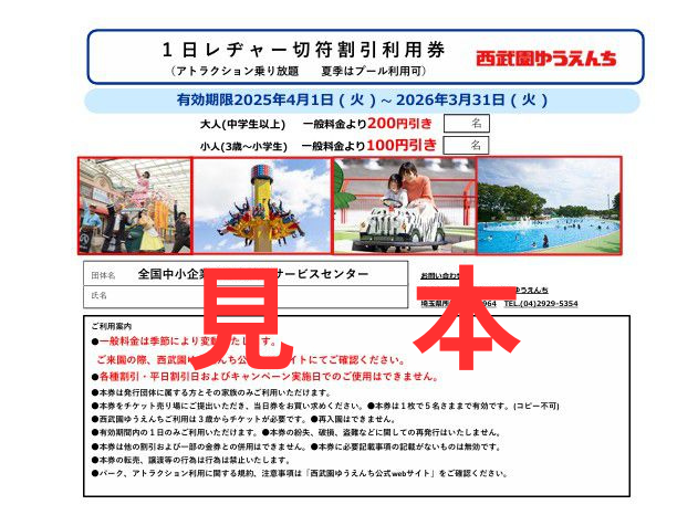 全国中小企業勤労者福祉サービスセンター(「全福センター」)のホームページより割引利用券をプリントアウト(モノクロ可)し、チケット売り場にご提出ください。なお全福センターのIDは「kt」、パスワードは「zenpuku」です。