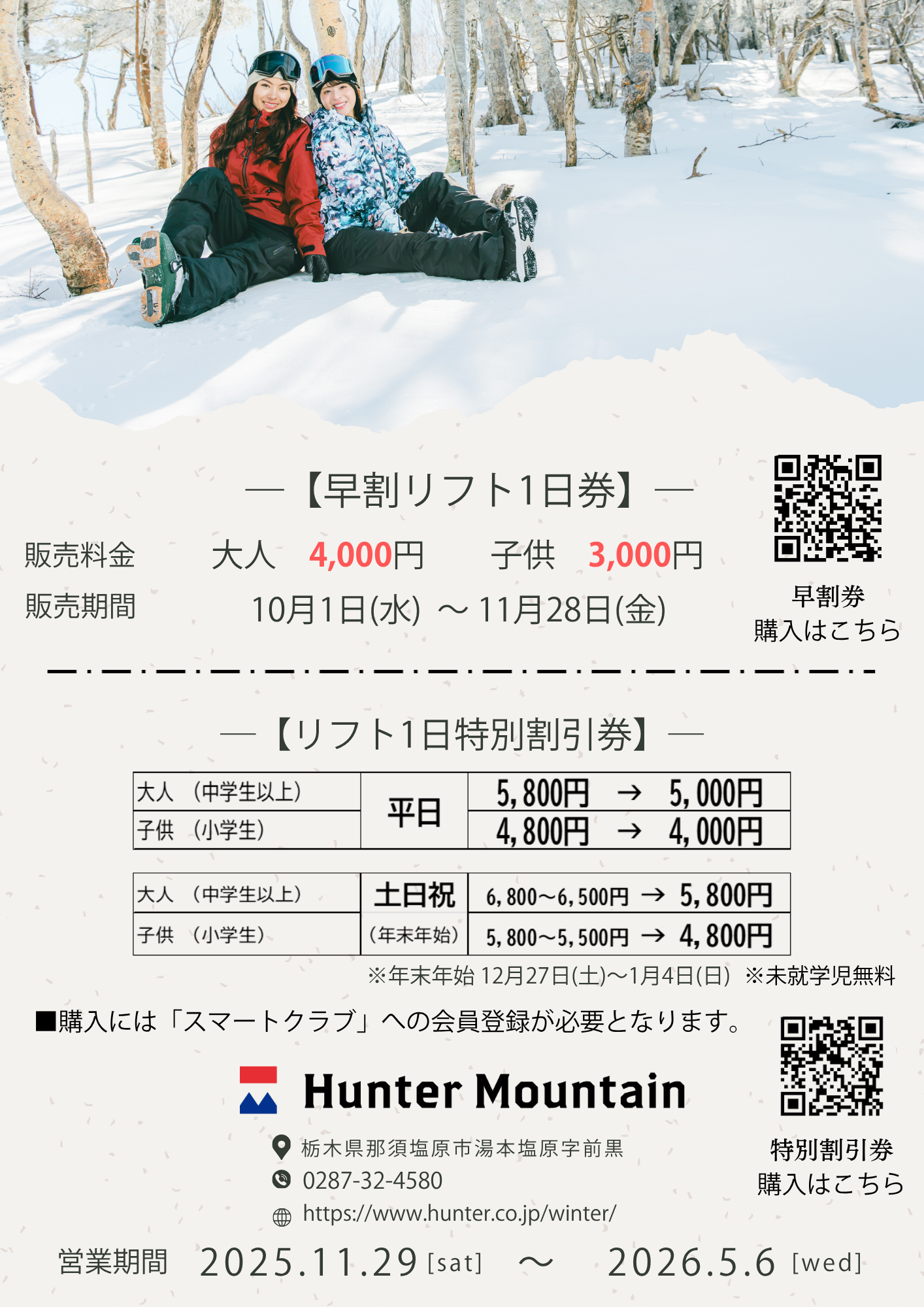 スキーリフト券販売・割引 (センターニュース11月号掲載)